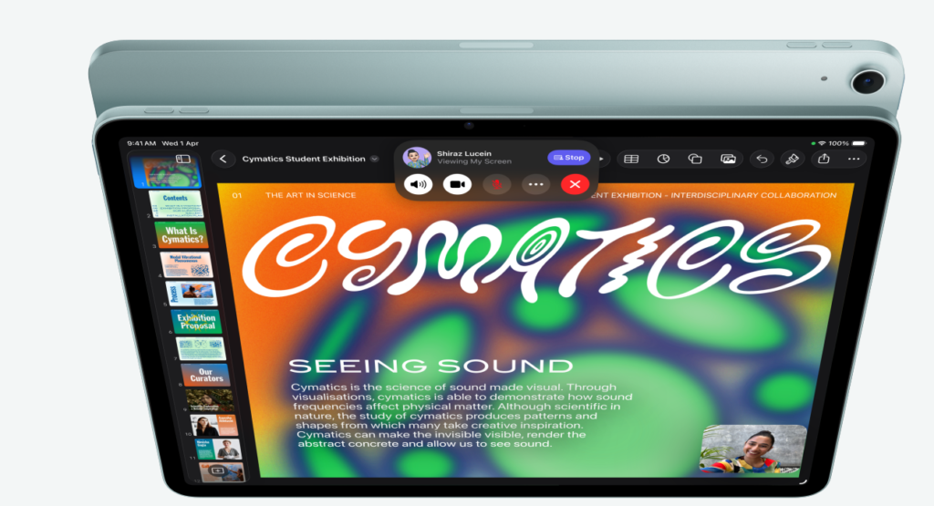 - Supports Apple Pencil Pro (pressure, tilt, squeeze, haptic feedback) & Magic Keyboard.